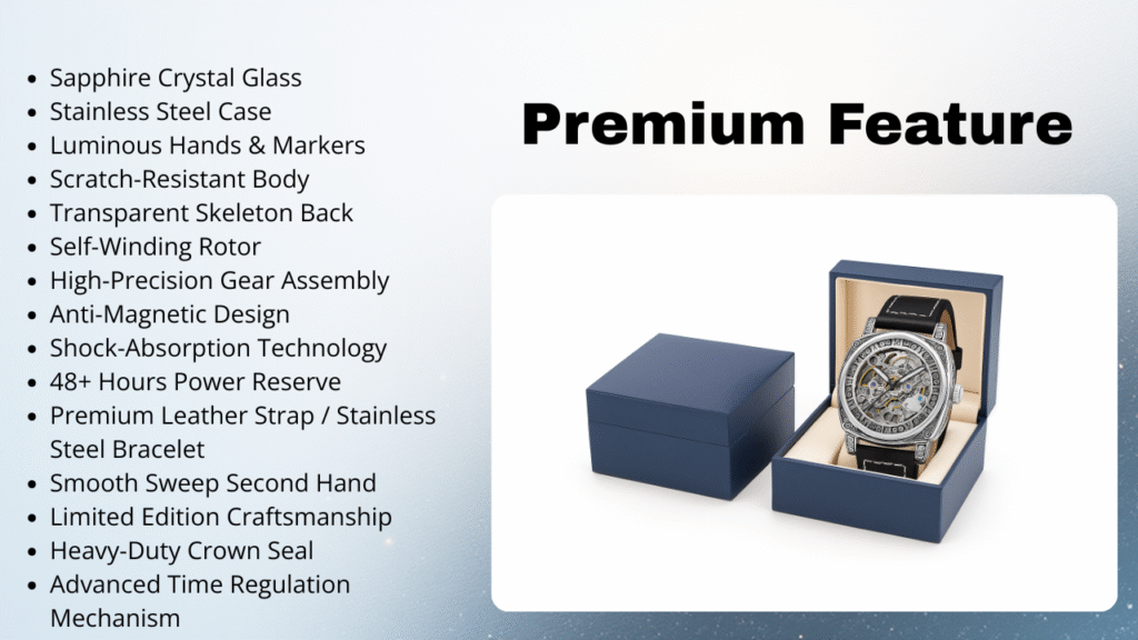 The PynTime Mechanical Watch is not just another accessory… it is a statement of confidence, maturity, and class. It tells the world that you value your time, your image, and your standard as a man. While other watches die, disappoint, or fade, this one stands strong — powered without batteries, designed with precision, and built to last for years.